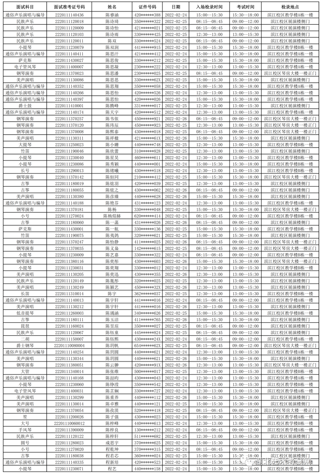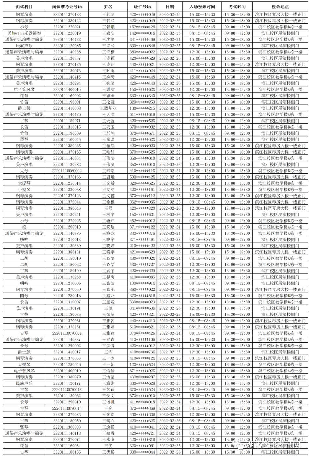 2.音乐表演专业各招考方向现场校考的专业面试和《视唱》科目考试2月24日至26日线下如期进行,专业面试明细安排详见招生信息网。