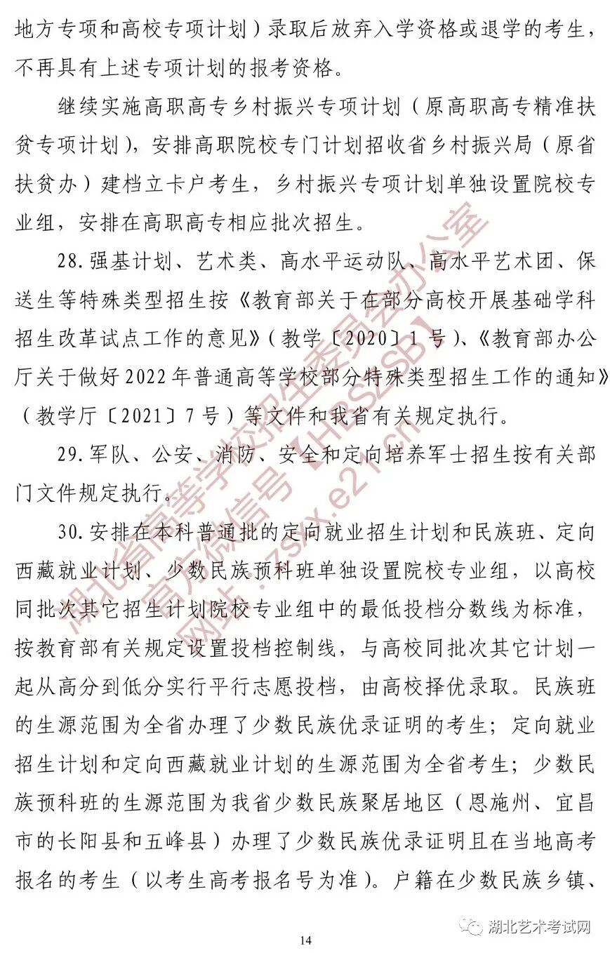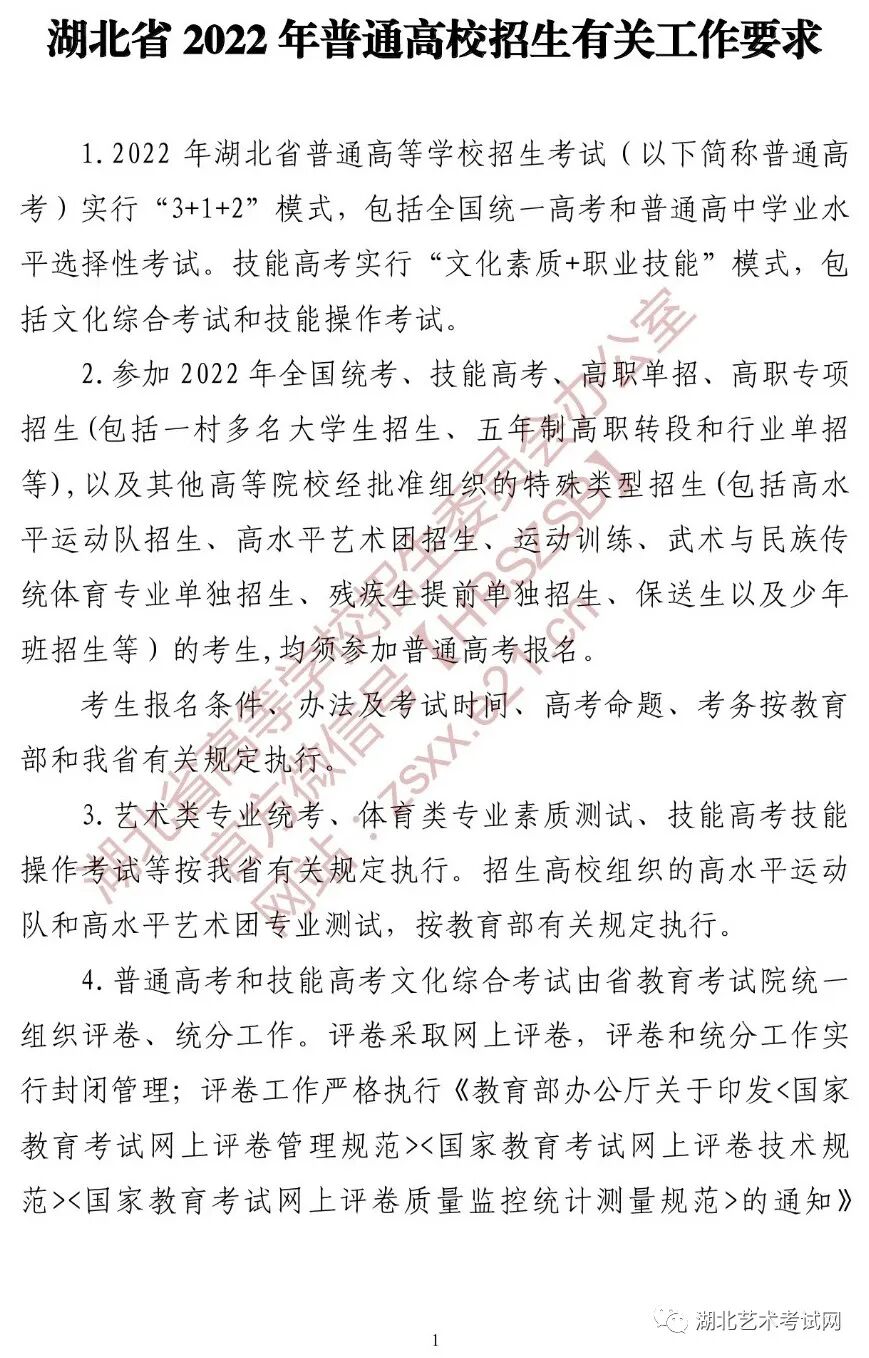 湖北省2022年普通高校招生工作通知 艺术类专业志愿填报时间:6月29日--7月2日