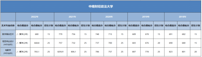 02 中南财经政法大学近五年艺术类本科录取分数线及招生计划